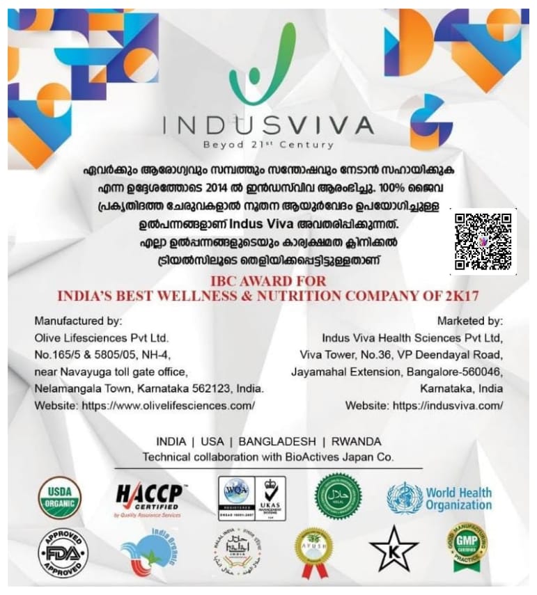 ♦ Indus Viva യുടെ പ്രോഡക്റ്റ്കൾ AYUSH പോലുള്ള ഉന്നത സ്ഥാപനങ്ങളുടെ അംഗീകാരത്തോടെയുള്ളവയും, ക്ലിനിക്കൽ ഇൻവെസ്റ്റിഗേഷൻ വിജയപ്രദമായി നടതപ്പെട്ടവയും, അസംഖ്യം അനുഭവ സാക്ഷ്യങ്ങളുള്ളവയും, ആർക്കും പരിശോധിച്ച് ബോധ്യപ്പെടാവുന്നവയുമാണ്.
